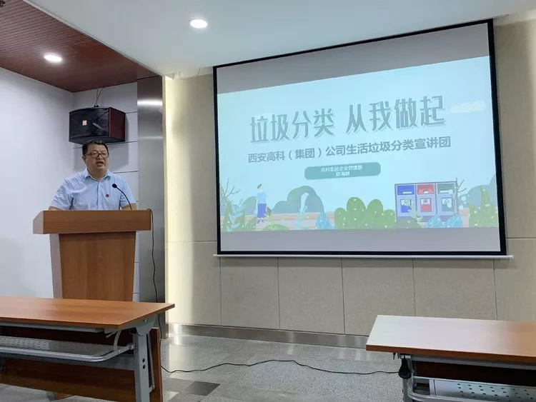 為推動(dòng)西安市垃圾分類(lèi)工作在公司順利開(kāi)展,進(jìn)一步提高公司員工的垃圾分類(lèi)意識(shí),使公司員工了解西安實(shí)施垃圾分類(lèi)的背景、意義以及如何進(jìn)行垃圾分類(lèi)的操作流程等。秉承教育好一個(gè)員工,帶動(dòng)一個(gè)企業(yè),文明整個(gè)社會(huì)的理念。2019年8月14日上午,公司邀請(qǐng)高科集團(tuán)公司企業(yè)管理部鄭海鵬同志給公司全體員工上了一堂生動(dòng)有趣 |